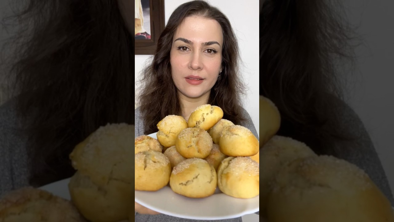 Un hariç bütün malzemeleri bir kaba alıp karıştıralım.Unu kontrollü ekleyip yoğuralım.Elimizle ceviz büyüklüğünde bezeler alıp yuvarlayalım.Üzerine toz şeker serpip yağlı kâğıt serili fırın tepsisine alalım.170 derecedeki sıcak fırında 15 dk pişirelim.Deneyenlere afiyet olsun🤗🌸