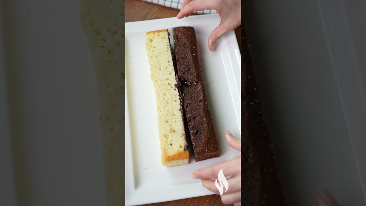 Parçaların ana yüzeylerine ganajdan sürerek sade kekin üzerine kakaolu parçayı, kakaolu kekin üzerine de sade parçayı yerleştirelim.